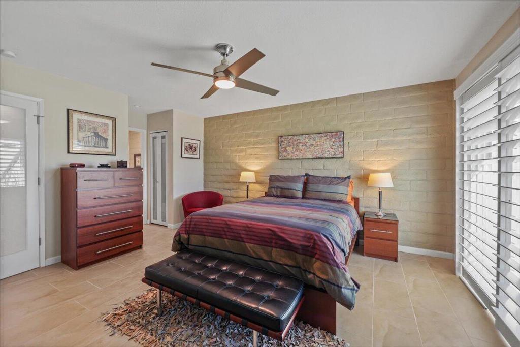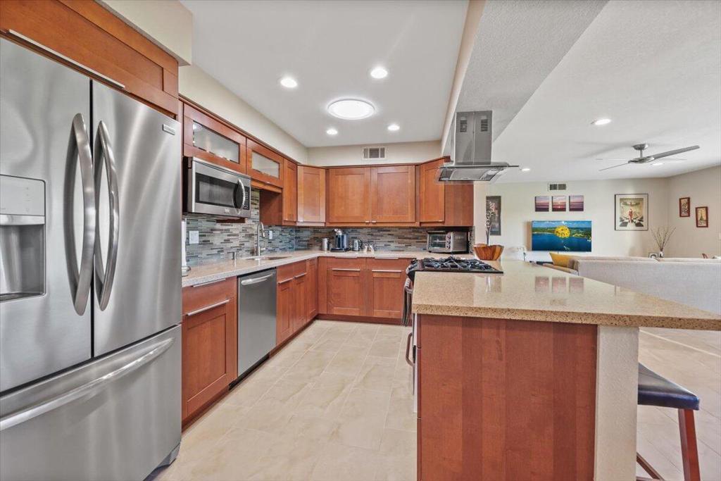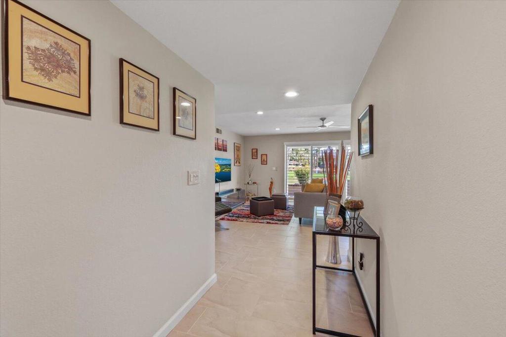 Completely reimagined and impeccably upgraded, this extensively customized condo offers an outstandinglocation in the heart of Cathedral City's gated Cathedral Canyon Country Club. This single level unit is perfectly located at the end ofan intimate cul-de-sac, steps away from one of many community pools, and a stone's throw from the Tennis Center and golf clubhouse featuring a regulation length 18 hole course, Direct access to the new CV Link bike path right from within the community. The gated entry courtyard withbeautiful mountain views creates the ideal spot for morning coffee. An expansive wraparound back patioborders the lush fairways of the community's 18-hole golf course and embraces vast vistas of rolling turf anda shimmering lake. Indoors, two bedrooms, two baths, a den with courtyard access, and a custom bonusroom/office that opens to the rear patio are revealed in approximately 1,736 square feet. Walls werereconfigured to create a seamless space that enriches daily living and effortless entertaining. A custom MidCentury-inspired entry door leads to living and dining rooms that frame scenic views through windows andsliders opening to the patio. Chefs of all skill levels will appreciate an open kitchen with peninsula bar,handsome stained-wood Shaker cabinetry, solid-surface countertops, a full tile backsplash and preferredstainless steel appliances. Both bedrooms provide patio access, and the primary suite hosts frosted-glasswardrobe doors and an ensuite bath with custom walk-in shower. Recessed LED lighting, contemporarylighting fixtures and solar-tube skylights illuminate the home, while custom paint, designer floor tile, ceilingfans and plantation shutters lend upscale flair. Upgraded dual-paned sliders throughout, newer HVAC, a split AC unit inthe bonus room, and a newer roof with recent re-coat enhance energy efficiency. Outdoors, the patio andcourtyard decking was resurfaced to look like stone. The Cathedral Canyon Tennis Club and clubhouse aresteps away, and the gated enclave features countless pools, parks and pathways. This residence isperfect as a lock-and-go vacation getaway and a wonderful year-round home. Downtown Cathedral City'sshops and restaurants, Palm Springs, Rancho Mirage and Palm Desert are all within easy reach, and milesof hiking trails, scenic parks and even a surf club are moments away